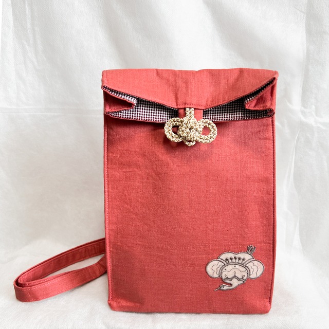 お散歩ポシェット -ポピーレッド×梅鶴-