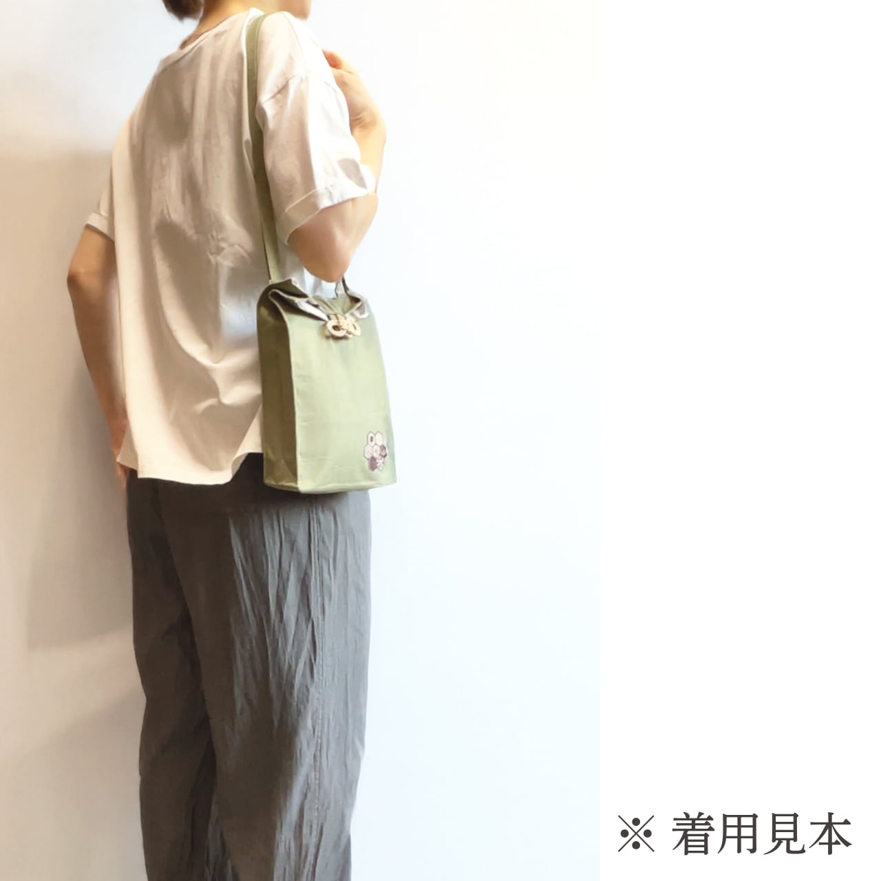 着物のときにはお太鼓の上からでも斜めがけがしやすいように。背の高い方でも使いやすいようにと、自由な使い方ができる長さにしています。