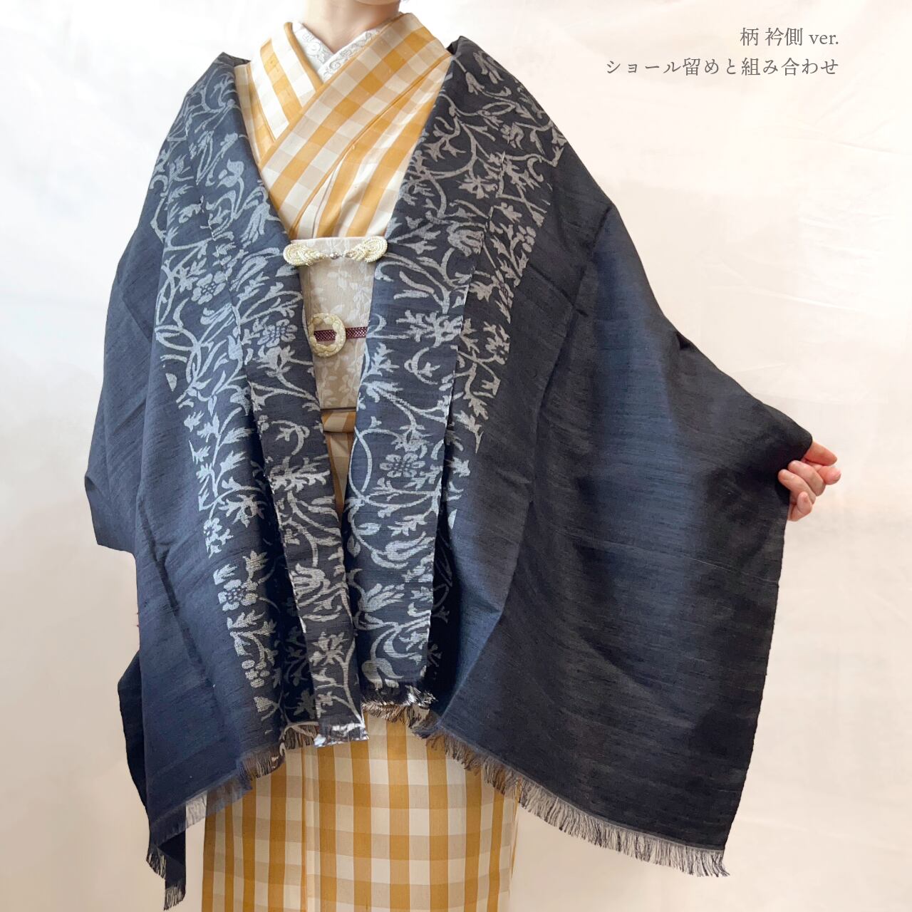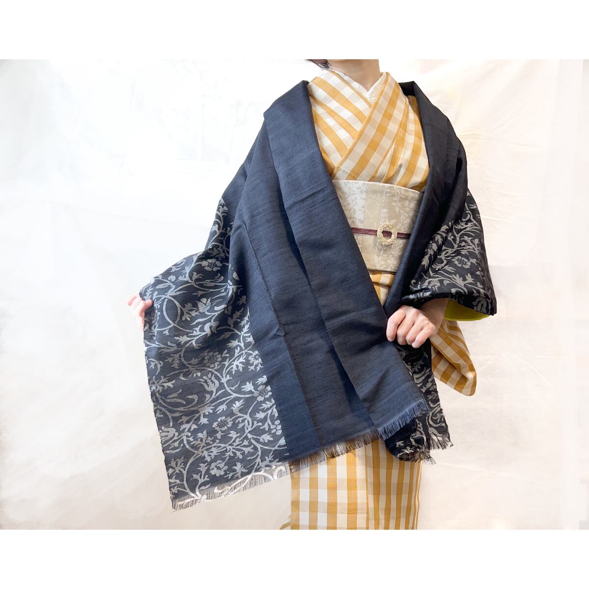 柄の変化により、その日の気分や洋服でも着物でも、選び方に合わせてコーディネートを楽しめる、非常に使い勝手の良いショールです。